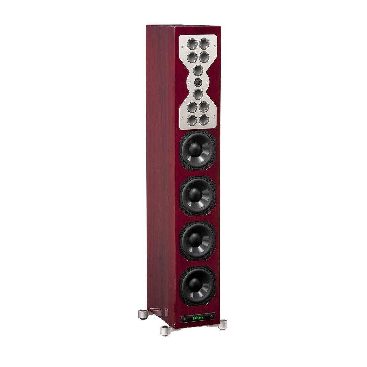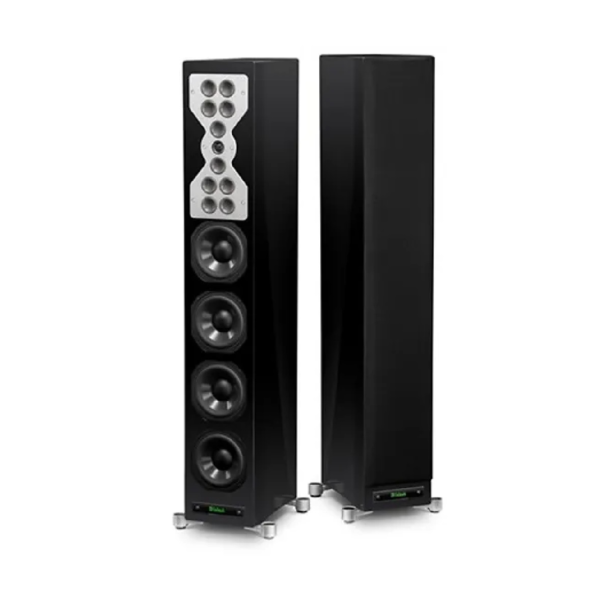 Las XR100 no solo destacan por su rendimiento, sino también por su diseño elegante y atemporal. Con un acabado en negro piano de alta calidad y una construcción robusta, estas bocinas se integran perfectamente en cualquier espacio. Además, el panel frontal está adornado con la icónica insignia de McIntosh, que refleja la tradición y el legado de la marca. Su forma delgada y estilizada hace que ocupen poco espacio, mientras ofrecen un rendimiento sonoro excepcional.