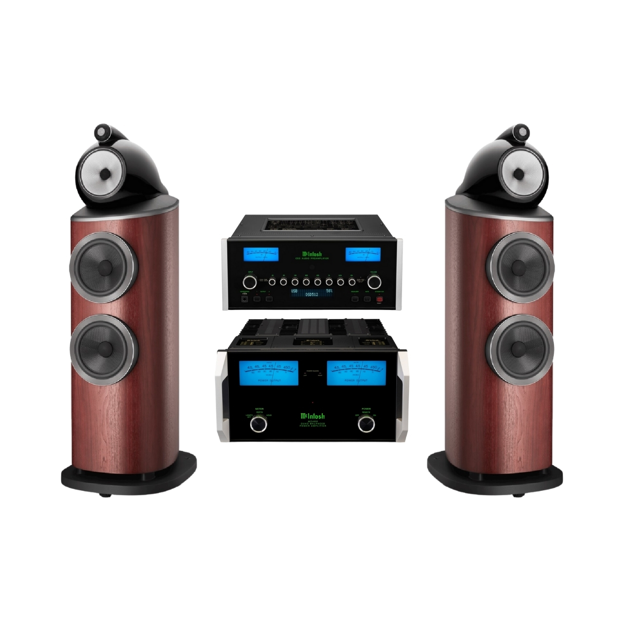 - McIntosh MC462: Amplificador de 450W por canal con diseño Quad Balanced.