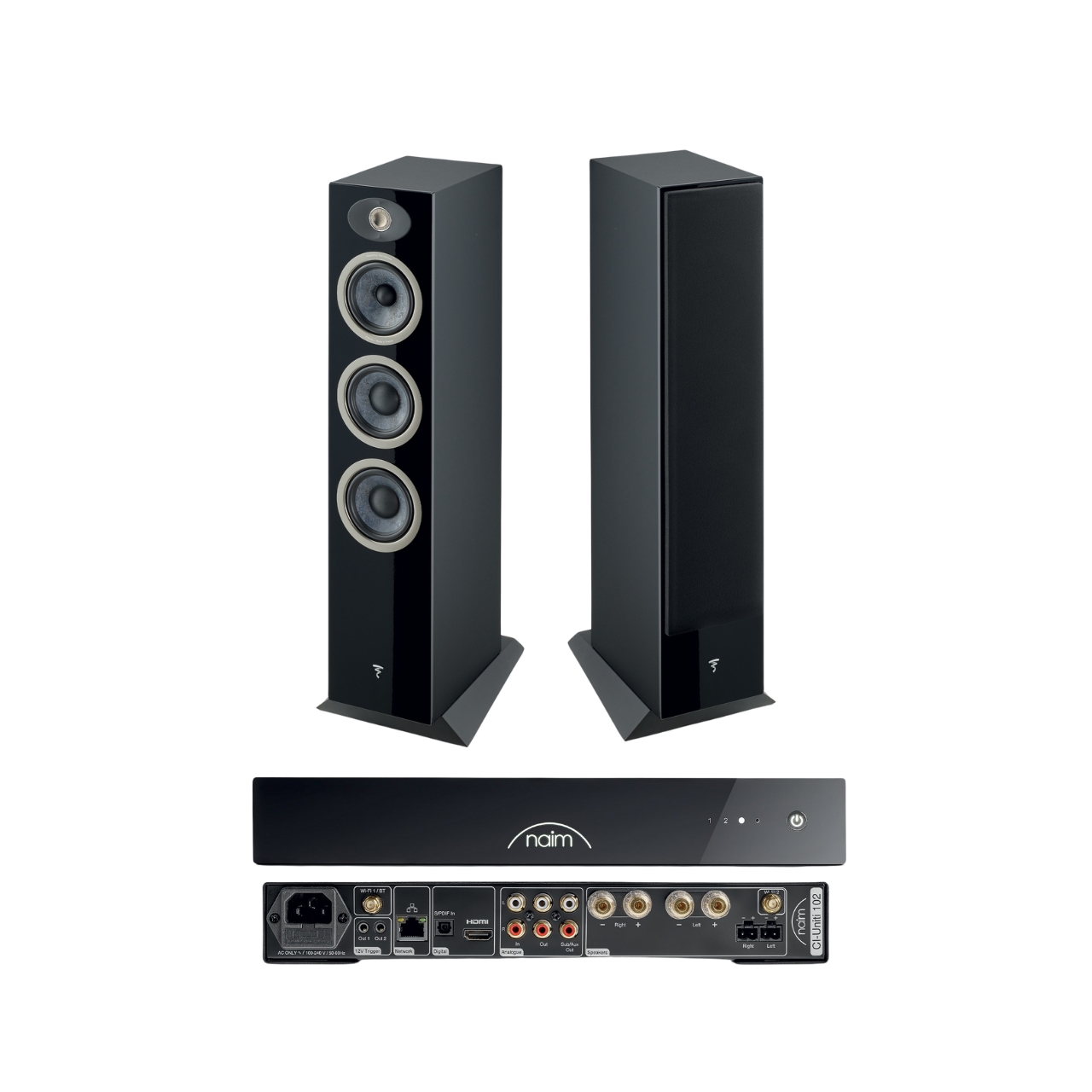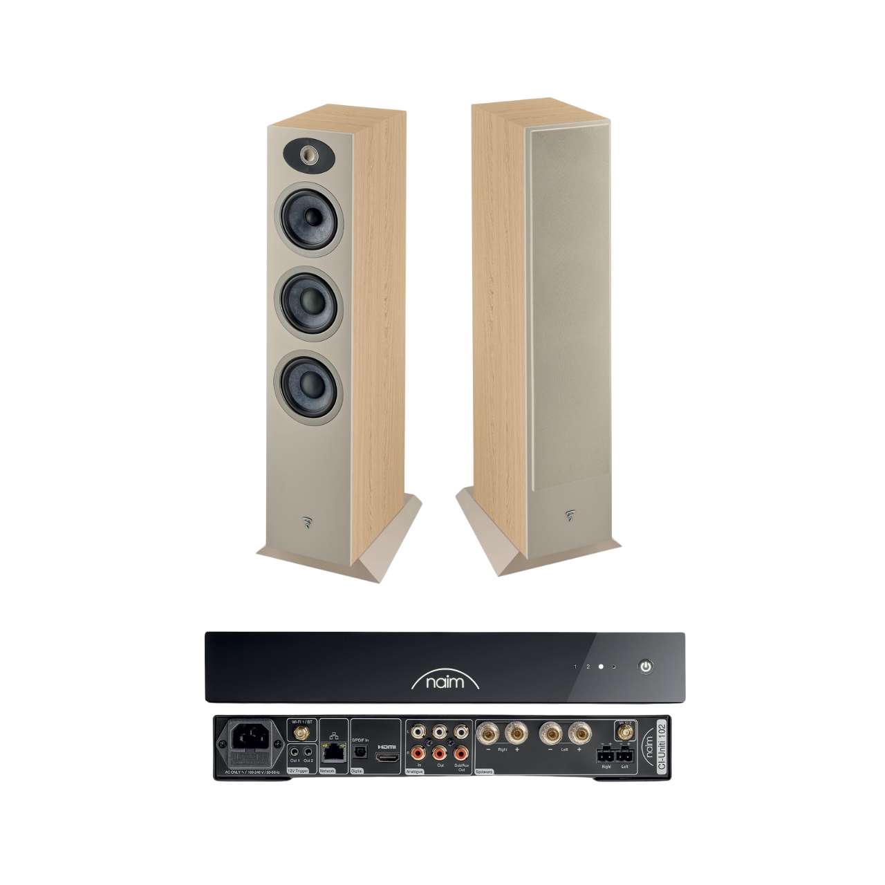 Las Focal Theva N2 proporcionan un sonido envolvente con una amplia dispersión gracias a su diseño de torre delgada y elegante, mientras que el Naim CI-Uniti 102 garantiza una amplificación precisa con 150W por canal y compatibilidad con AirPlay 2, Chromecast, TIDAL, Spotify Connect y Roon Ready.
