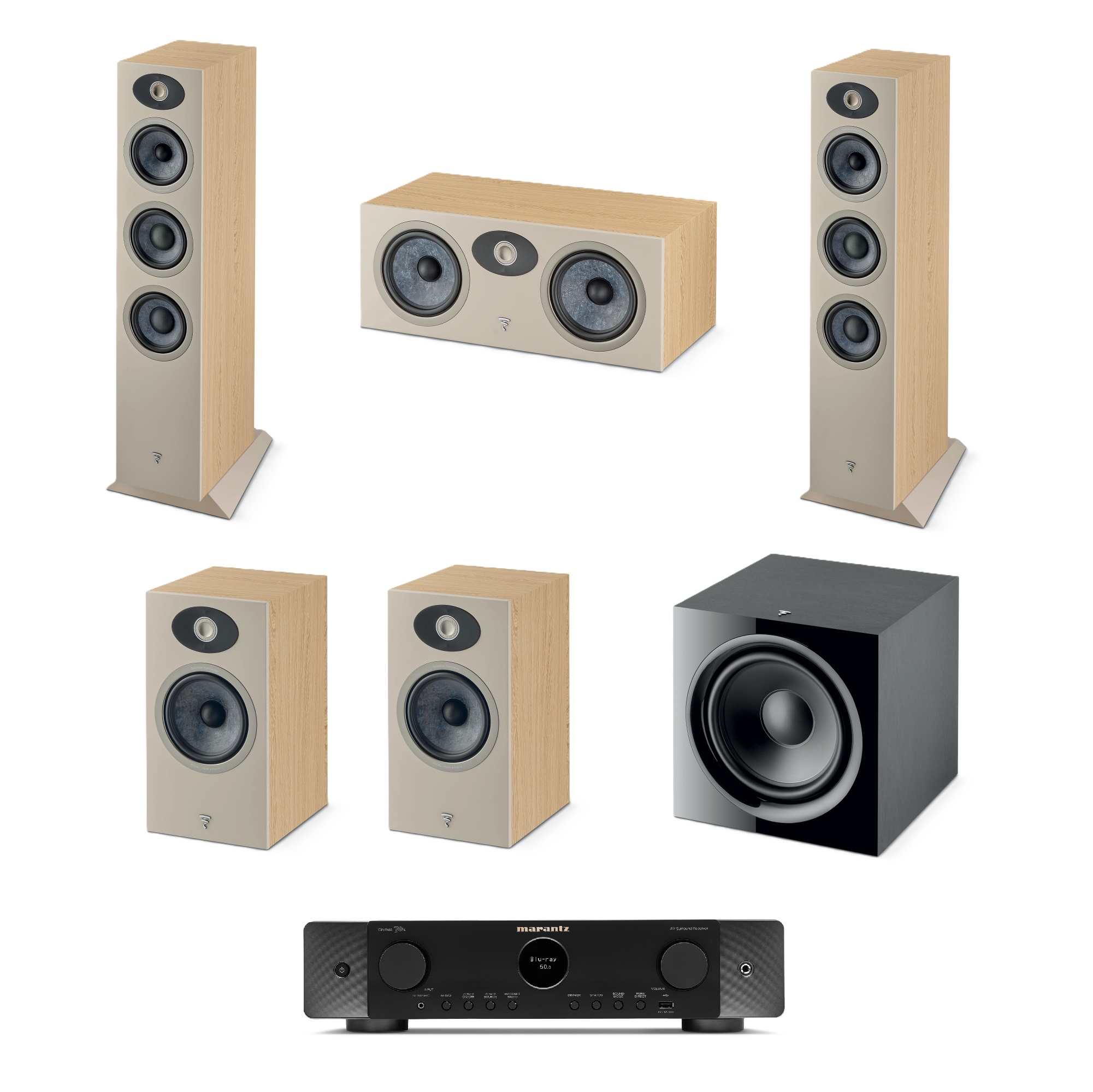 Este kit de cine en casa combina la elegancia y precisión de las bocinas Focal Theva N1, N2, Theva Center y el subwoofer Sub 600P con el receptor Marantz Cinema 70. Diseñado para ofrecer una experiencia de Home Cinema inmersiva en espacios pequeños o medianos, este sistema equilibra tecnología avanzada y diseño discreto.