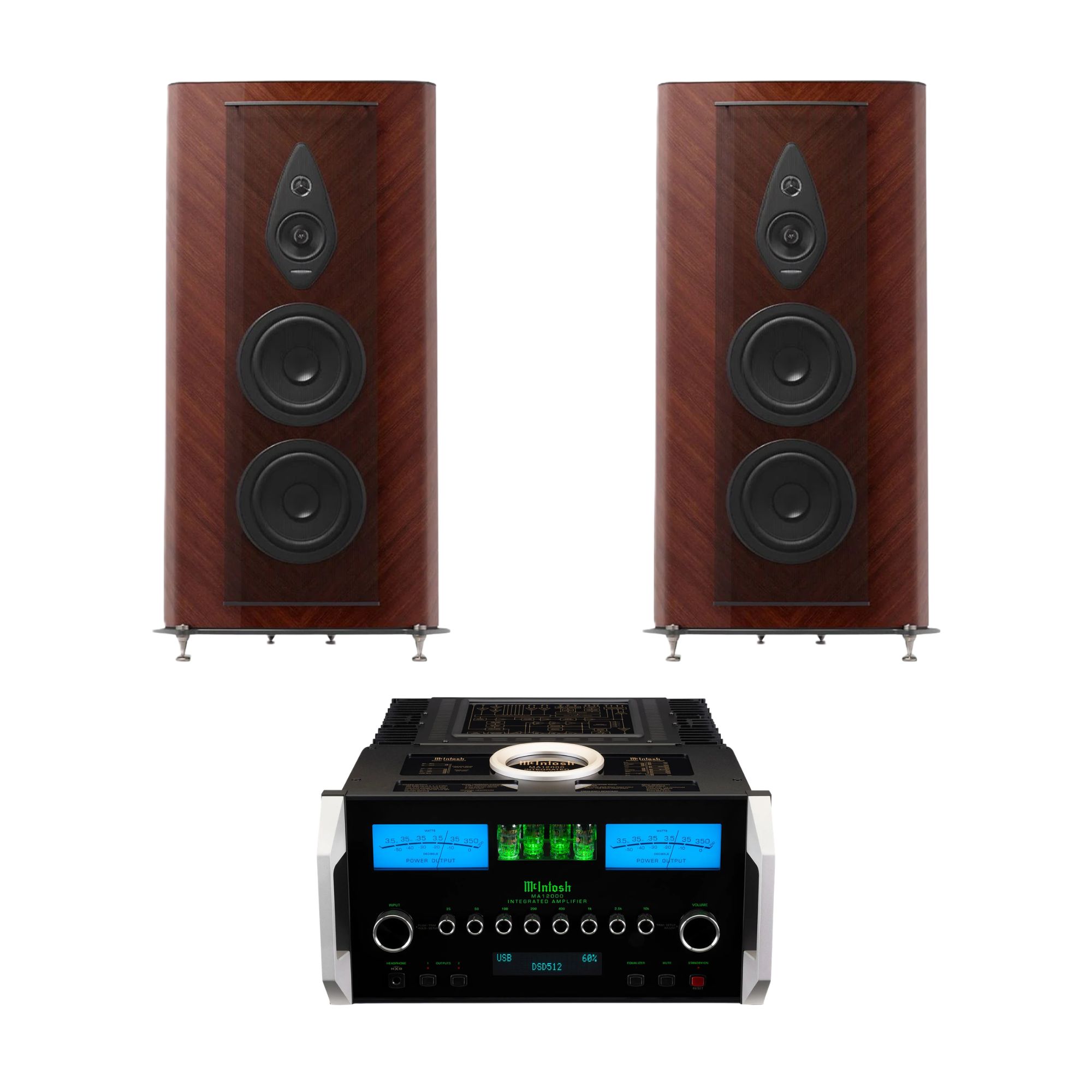 Este sistema une la majestuosidad artesanal de las Sonus Faber Stradivari con la potencia híbrida y sofisticación tecnológica del McIntosh MA12000. Es una configuración diseñada para quienes buscan un sistema High-End con presencia monumental, dinámica ilimitada y una escena sonora que llena la sala con naturalidad y profundidad.